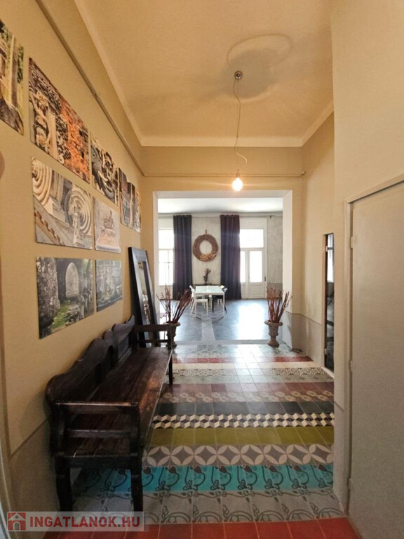 Kaposvár belvárosának szívében, az Ady Endre utcában kínáljuk megvételre ezt az újra gondolt, minőségi módon felújított lakást. Az első emeleten helyezkedik el, alapterülete 97 m2, helyiségei tágasak, világosak. Az előszoba fogad, itt már látszik is szemben a különösen nagyméretű nappali. Balra található egy hálószoba, jobbra a konyhába jutunk, ahová kamra is csatlakozik. Az előtér kiszélesedik, innen nyílik a külön kialakított WC és a fürdő az épített zuhanyzóval. Burkolata egészen különleges, játékos, de az egész lakásra jellemző egy nem szokványos jó hangulat és harmónia. Ezt tökéletesen kiegészíti a kis kőkorlátos, sétáló utcára néző erkély. A fűtés egyedi gázos, konvektorokkal megoldva, a nyílászárók autentikusak, eredetiek, de felújítottak. A felújítás során a villanyvezetékeket is kicserélték. Az épület U alakú, hátra felé néző belső udvara és a lépcsőház is rendezett, láthatóan szeretnek itt élni a lakók.