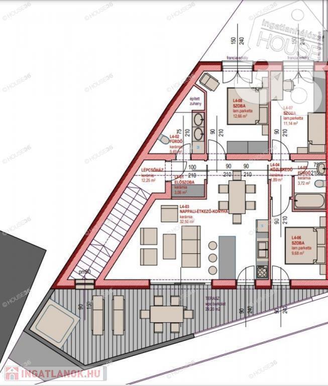 lakás: 92,45 m2, terasz: 16,27 m2, erkély: 4,56 m2