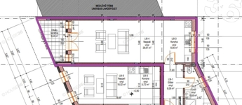 A társasház első emeletén, 46,37 m2 lakóterű, nappali + amerikai/konyhás lakás, 5,64 m2 erkéllyel megvásárolható.