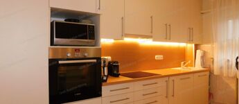 Keszthely frekventált részén helyezkedik el a lakás, 1100 méterre a Balatontól.