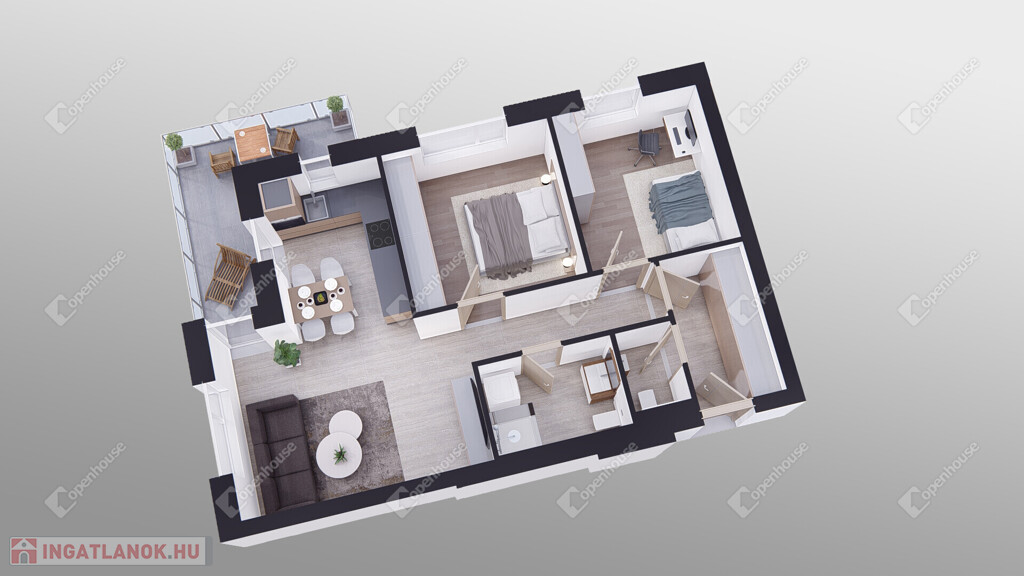 Nappali + 2 hálószoba