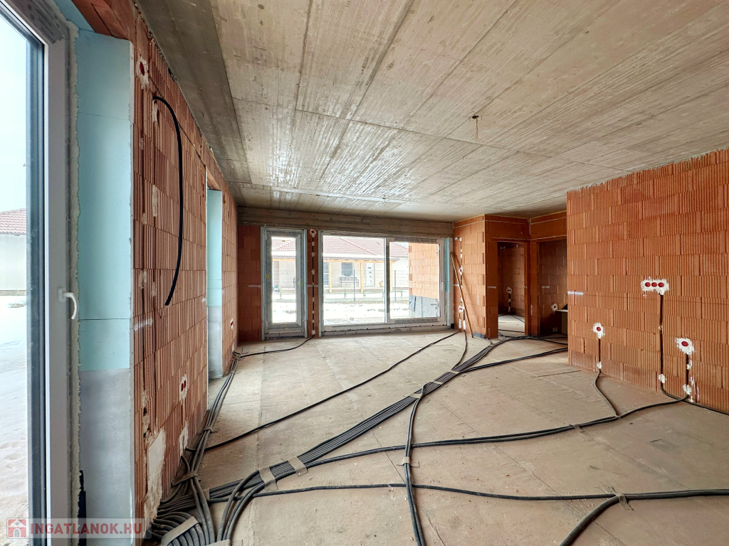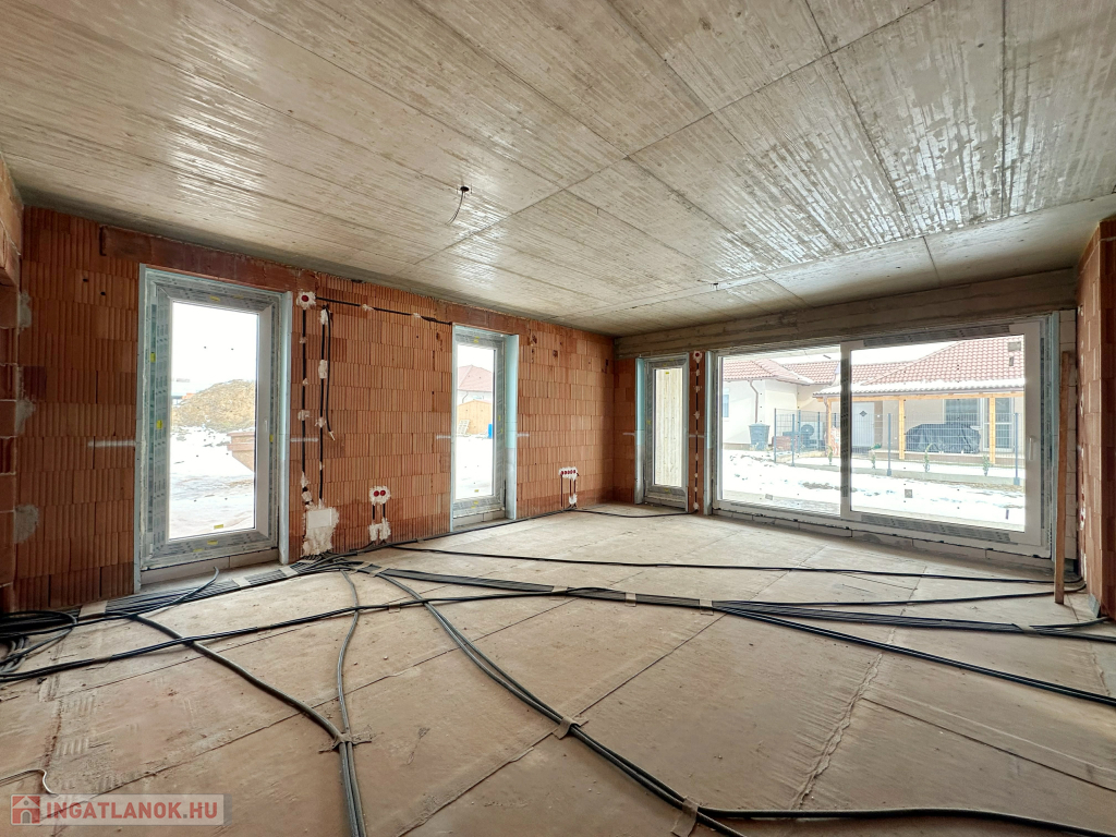 Földszinti 93m2-es lakás, 63m2 kerttel, 2 hálószobával, terasszal, saját autó beállóval és tárolóval.