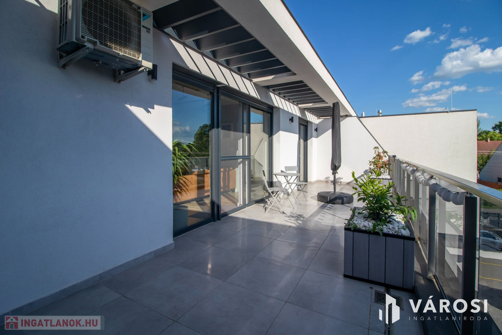 A lakás kiemelkedő része a két hatalmas terasz. Az egyikről a napfelkeltét csodálhatjuk meg, akár reggelizés közben, miközben a ház melletti erdő fáin lakó madarak csicsergését hallgatjuk. A másik erkélyről a naplemente csodás fényeiben gyönyörködhetünk. A nyári nagy melegben mindig van egy olyan terasz, ahol árnyékban, vagy a napon lehetünk. Az egyik terasz statikailag alkalmas jacuzzi elhelyezésére is. A vízkiállás már ki van építve hozzá.
