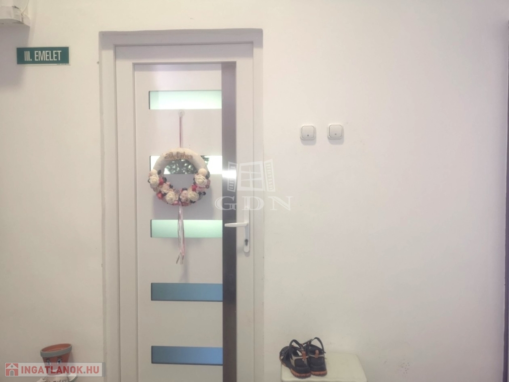 A 75 négyzetméteres otthon a harmadik emeleten helyezkedik el, és két hálószobát, valamint egy nappalit kínál.