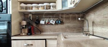 A konyha beépített háztartási gépekkel (sütő, főzőlap, páraelszívó) felszerelt, melyek a vételár részét képezik.