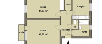 Helyiséglista: 2 szoba, konyha-étkező, kamra, fürdőszoba, WC, előszoba, erkély, pince