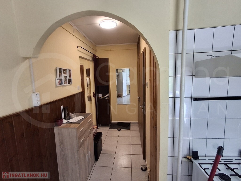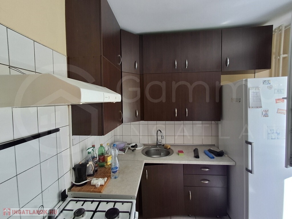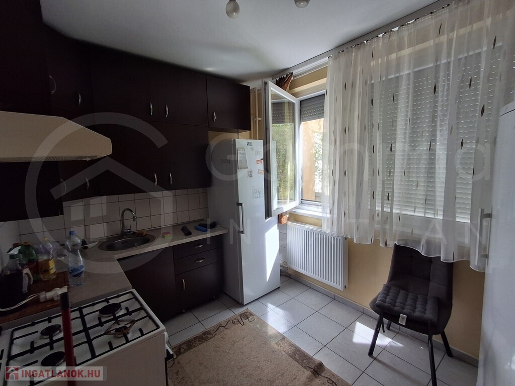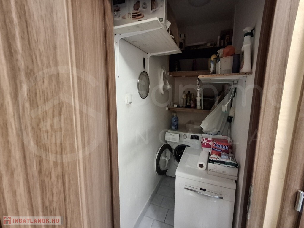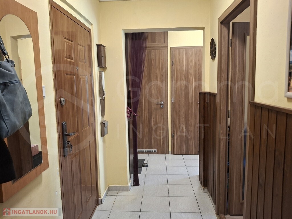 A szobák laminát parkettásak, az előszoba, a konyha és a fürdőszoba csempeburkolatúak. A konyhaszekrény egyedileg gyártott.
