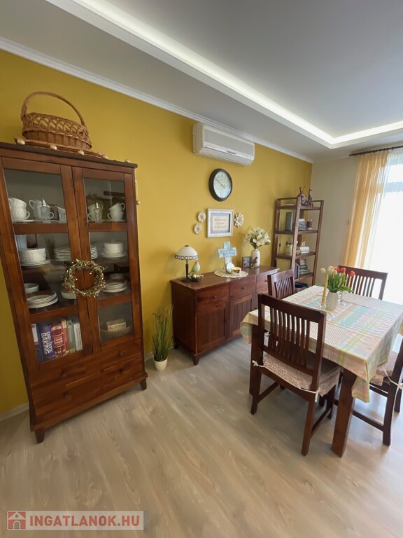 Nyíregyháza egyik csendes, mégis központközeli utcájában, 6 lakásos társasházban 160 m²-es, 5 szoba + nappali, 2 fürdő 2 wc, mosókonyha, kelet–nyugati tájolású 2 erkélyes, járólap és laminált parketta burkolattal, műanyag nyílászárókkal lakás eladó. Ez az otthon több mint egyszerű lakás: tágas terei, praktikus elrendezése és barátságos hangulata miatt igazi családi fészek. Kis udvar és játszótér is tartozik a lakáshoz, így a gyerekek is biztonságban játszhatnak a szabadban
