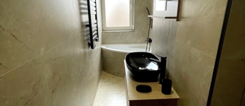 Teljes körű, igényes felújítás (járólapok és laminált burkolatok kombinációja)