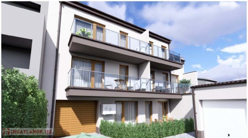 A földszinti lakás: 45 m2 + teraszkapcsolat, 1 szoba + nappalis elosztással. Egyedi gázfűtés, padló fűtés. Ára: 54.900.000 Ft