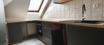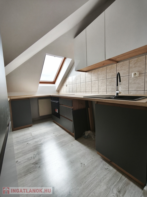 Praktikus elrendezés: Egyedi beépített konyha, külön WC, a fürdőszobában pedig kád és zuhanyzó is található.