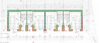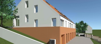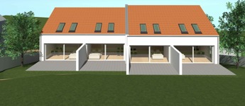 Összesen 4db duplakomfortos lakás kap helyet, konyha-nappali+3 hálóval, mindegyik garázzsal, kertkapcsolattal, alsó és felső szintel.