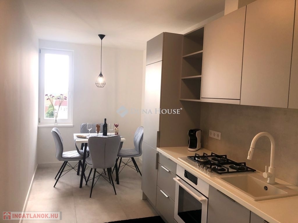 Eladó Pécs belvárosában, a PTE mellett egy teljes körűen felújított 2 szobás lakás!Az ingatlan belső elrendezése:2 külön bejáratú szoba, tágas konyha-étkező, fürdőszoba wc-vel, közlekedő és háztartási helység.A lakás az idei évben került felújításra, kizárólag minőségi anyagokkal, igényes kivitelezéssel.A felújítás során cserélve lett a teljes villamos és vízvezeték hálózat, fűtését és melegvíz ellátását nagy teljesítményű, wifi-s kombi gázkazán biztosítja. Ablakok, bejárati ajtó és belső ajtók szintén cserélve, egyedileg gyártott konyhabútor került beépítésre. Új fürdőszoba zuhanykabinnal, új padló és falburkolatok, fényzáró függönyök.A lakáshoz tartozik egy udvari tároló is.Buszvégállomás és az Árkád bevásárló központ 3 perces sétára, történelmi belváros szintén néhány perc alatt elérhető.Bővebb információkért hívjon.