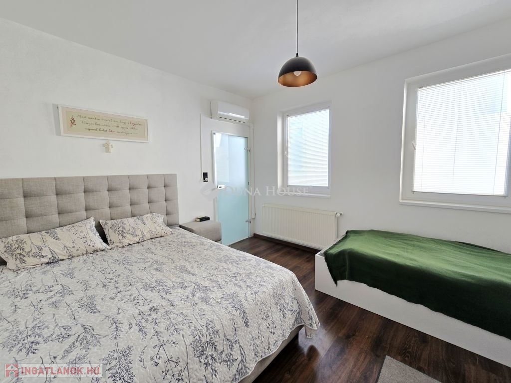Belvárostól pár perc sétára a Tettyén eladó egy 97 nm alapterületű, amerikai konyha-nappali+2 tágas szoba elosztású, belső 2 szintes, teljeskörűen felújított, klímás, gáz kondenzációs kazánnal fűtött, tégla lakás, felső szinten egy saját terasszal, alsó szinten pedig közös udvarral és terasszal.Az ingatlan egyedi elosztása lehetővé teszi. hogy a felső szintet lakásként, az alsó szintet pedig iroda vagy akár vállakozás céljára hasznosítsák!A lakás tehermentes és 3-4 hónapon belül költözhető!I.ár: 84,9M Ft