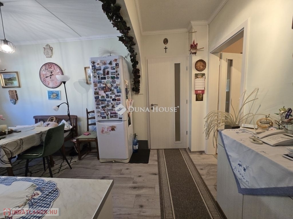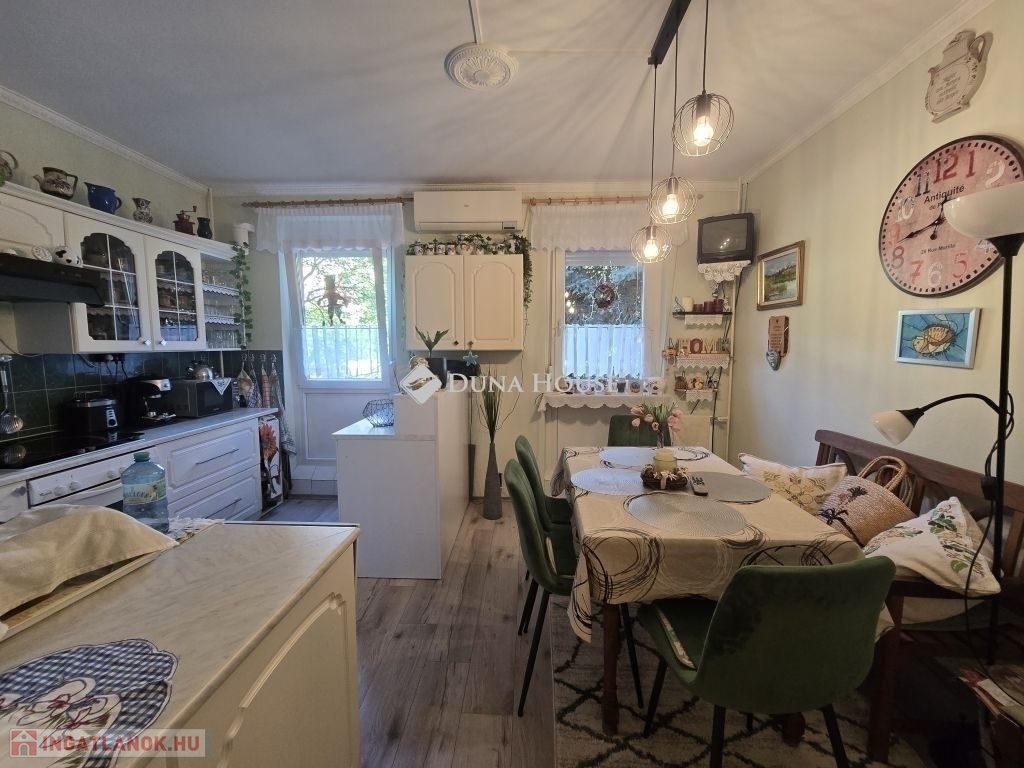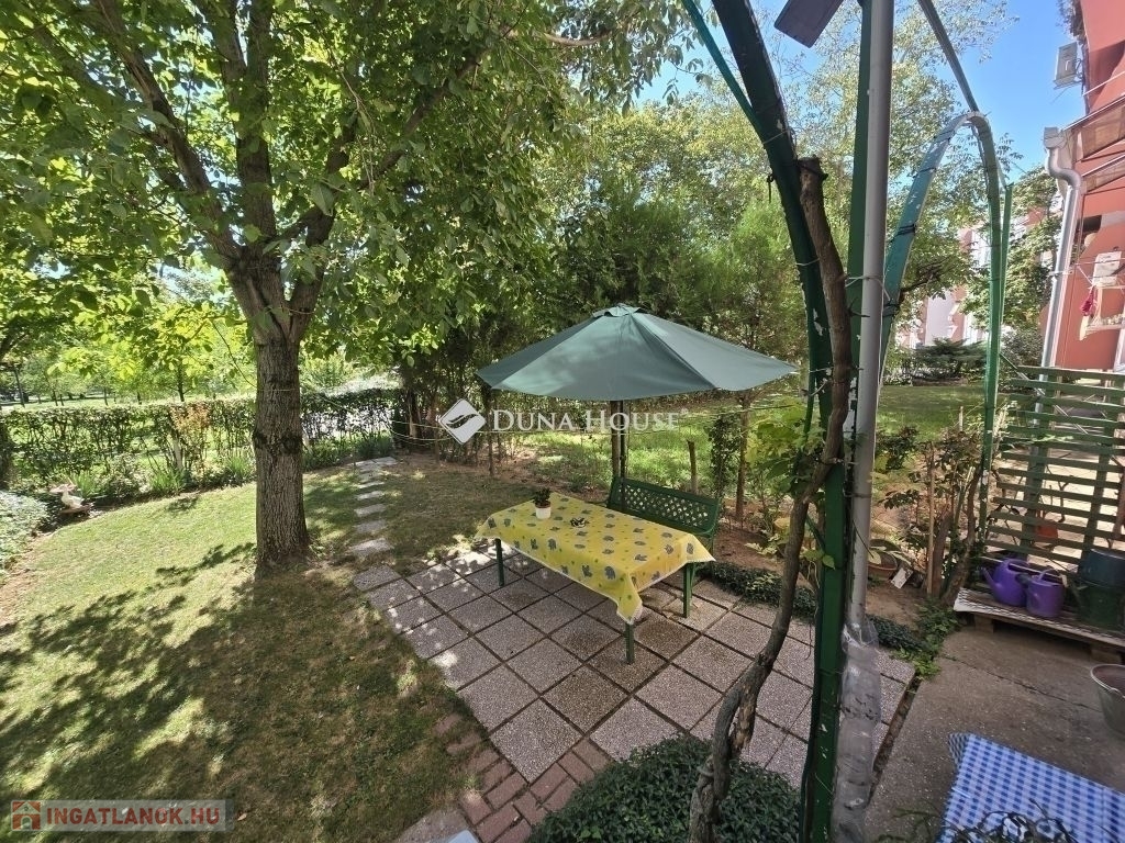 Eladó 74 m2-es, földszinti, kertkapcsolatos lakás kertvárosi környezetben!Eladásra kínálunk a Nagy Imre úton egy 74 m²-es, jó állapotú, földszinti lakást egy négyemeletes, szigetelt panelépületben. Az eredetileg 3,5 szobás elrendezés modern igényekre lett átalakítva: tágas konyha-étkező és három külön nyíló hálószoba várja új tulajdonosát.A lakáshoz tartozik egy különleges adottság: az önkormányzattal kötött használati megállapodás alapján egy kerítéssel körbevett zöld terület, virágos kert is a tulajdonos kényelmét szolgálja. A gondozott kertben hintaszék, kerti asztal és székek is helyet kaptak így a lakás valódi kertkapcsolatos otthon érzetét nyújtja.Főbb jellemzők:-műanyag nyílászárók (redőnnyel, szúnyoghálóval),-klímaberendezés,-részben cserélt beltéri ajtók,-rendezett, csendes lakóközösség,-nagy tároló ketten osztozva-kertkapcsolat-jó közlekedés, kertvárosi, nyugodt környezet.Az ingatlan tehermentes a kiköltözés picit hosszabb időt igényel. A lépcsőház tiszta ,rendezett a lakóközösség kiváló!Ez az ingatlan ideális választás családoknak vagy bárkinek, aki a kényelmes lakás előnyeit szeretné ötvözni a saját kert nyugalmával.További kérdéseivel és személyes megtekintésért várom hívását!