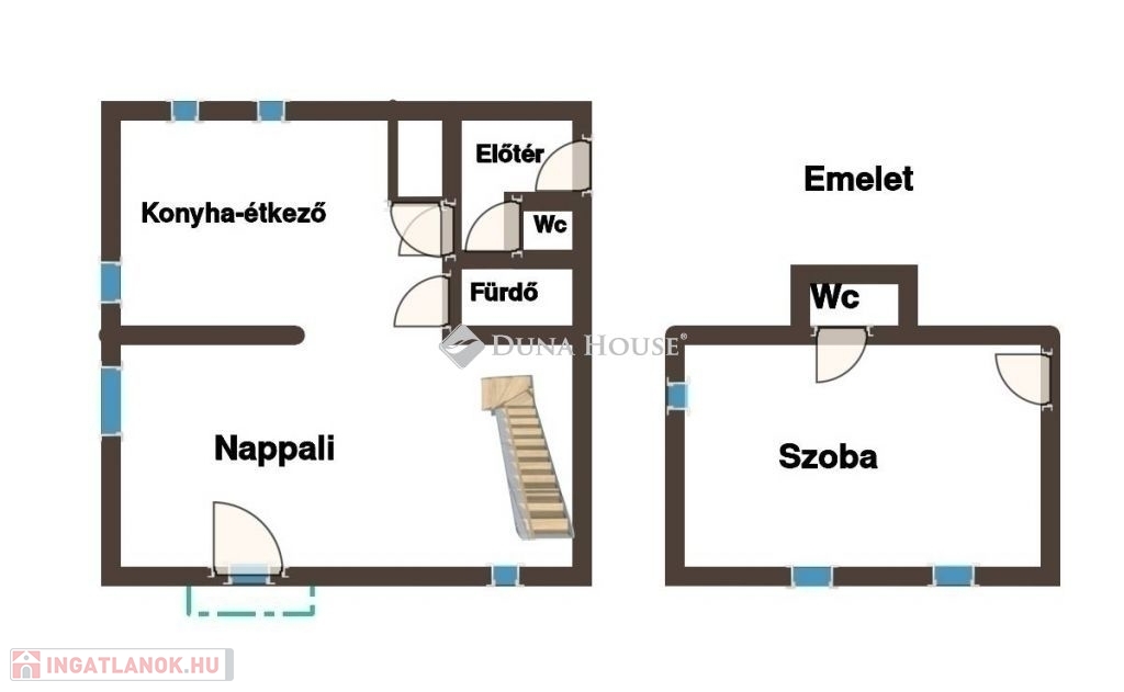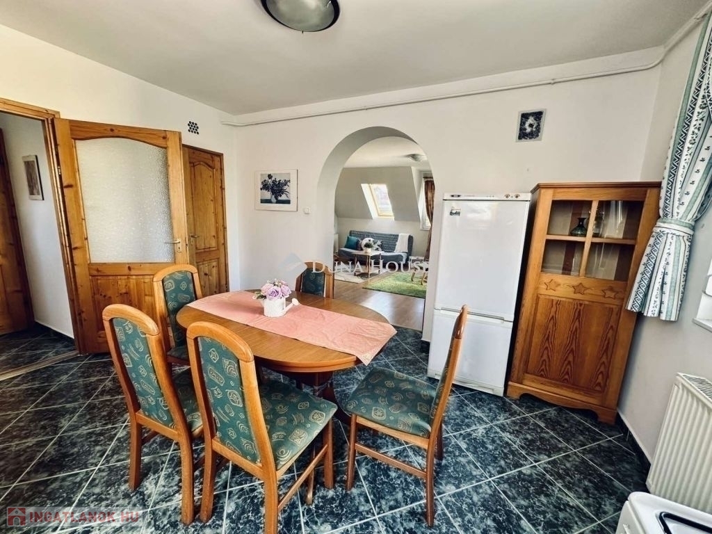 Az ingatlan elosztását tekintve konyha-étkező, nappali , fürdő,-wc, spájz, előtér valamint a tetőtérben kialakításra került 1 hálószoba+külön wc.