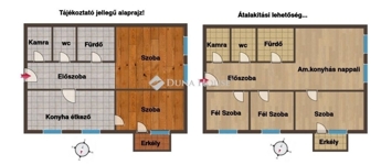 A jó elrendezésű lakásban jelenleg 2 külön bejáratú parkettás szoba és egy tágas konyha/étkező, külön fürdő és wc, kamra helyiség is található. !