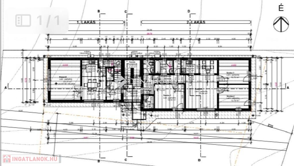 Egy 609 m2-es telken épülő 3 lakásos társasházban kínáljuk Önnek a jövő otthonát: 96 m2-es, nappali + három szobás, modern technológiával készülő ingatlant.