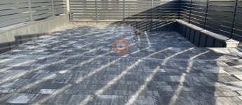 -privát térkövezett 100 m2-es kertkapcsolat , nagyméretű terasszal