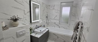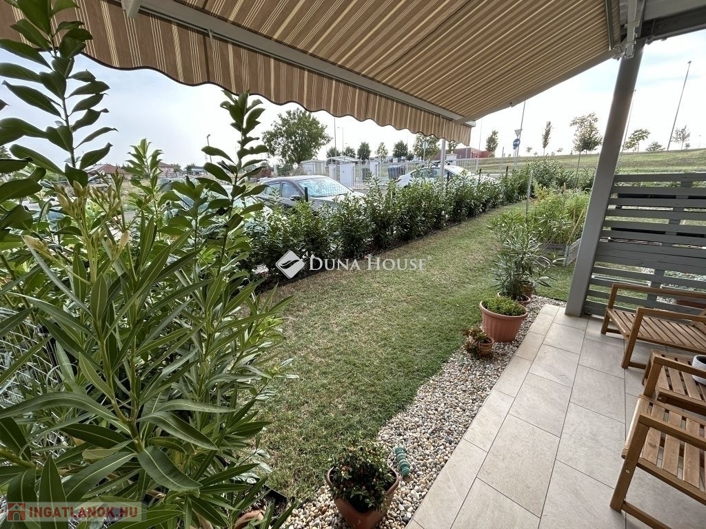 Eladó újszerű kertvárosi lakás, saját parkosított kertkapcsolattal!!!!!Pécs egyik csendes, zöldövezeti részén kínálunk megvételre egy 2023-ban átadott 92 m²-es földszinti lakást, amely minden igényt kielégítő belső kialakítással és kivételes külső adottságokkal rendelkezik.Kertkapcsolat és extra területekA lakáshoz tartozik egy 240 m²-es kizárólagos használatú, parkosított kert, benne egy könnyűszerkezetes, 10 m²-es kisházzal ideális tárolónak vagy hobbihelyiségnek.Két kényelmes terasz, mindkettő beépített, kinyitható árnyékolóval.Belső elrendezés 3 hálószoba Tágas nappali-konyha-étkező egy légtérben 2 igényes fürdőszobaPrémium felszereltség FAP olasz hidegburkolatok Hansgrohe falba süllyesztett csaptelepek Blanco gránit mosogató és csaptelep a konyhában Minőségi német konyhabútor kompakt munkapulttal, konyhaszigettel Új, elektromos fehér alumínium redőnyök minden ablakon Hőszivattyús padlófűtés + fancoil hűtés a kellemes klímáért egész évben Alacsony rezsiköltségek, energiahatékony, és letisztult, igényes belső terek.Elhelyezkedés szempontjából is ideális:A belváros autóval mindössze 7 perc, de a tömegközlekedés is kiváló. A mindennapi ügyintézéshez szükséges szolgáltatások csupán egy percre találhatók: Tesco, Rossmann, gyógyszertár, minden gyalogosan is gyorsan elérhető.