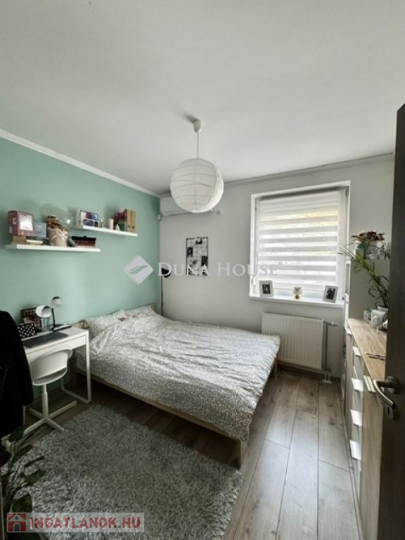 Pécs városrészében, a Rigóder közelében, zárt lakóparkban eladó egy földszinti, kertkapcsolatos lakás.Az ingatlan egy 2006-ban épült, tégla társasház földszintjén található, 70 m² alapterületű, elrendezése amerikai konyhás nappali, két hálószoba, előszoba, fürdőszoba WC-vel, valamint terasz. A lakáshoz kb. 60 m²-es, saját használatú kert tartozik, mecseki kilátással.A lakás 2022-ben teljes körű belső felújításon esett át, amely magában foglalja a belső nyílászárók cseréjét, a fürdőszoba felújítását, a burkolatok cseréjét, valamint az új konyhabútor beépítését. A konyhában beépített gépek találhatók. A nappali bútorzata és az előszobai beépített szekrény a vételár részét képezi.A fűtés központi rendszerű, a nappaliban és az egyik hálószobában hűtő-fűtő klíma került felszerelésre. Az ingatlan műanyag, szigetelt nyílászárókkal rendelkezik, redőnnyel és szúnyoghálóval ellátva.A lakópark csendes környezetben helyezkedik el, a közelben elérhetők alapvető szolgáltatások és tömegközlekedési lehetőségek.A jelenlegi tulajdonosok a lakóparkon belül garázshelyeket bérelnek. A bérlés nem része az ingatlannak, azonban jelenleg parkolási lehetőség rendelkezésre áll.