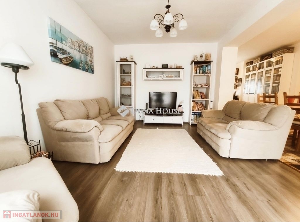 Eladásra kínálunk egy egyszintes, 130m2-es , tégla szerkezetű, kertkapcsolatos lakást, amely nem csak egy lakóhely, hanem egy otthon, ahol az élet minden szépsége kiteljesedhet. A ház 1 nappalival és további 4 szobával rendelkezik, amelyek tágasak és világosak, köszönhetően a jól megtervezett elrendezésnek.Az ingatlan a kertkapcsolatnak köszönhetően különleges lehetőséget kínál a szabadtéri tevékenységekhez. A kert gondosan ápolt, tökéletes hely a kikapcsolódáshoz, a gyerekek játékára vagy akár egy családi barbecue est szervezésére.Belépve a tágas előszobába, azonnal érezhető a nyugodt, családias hangulat, amit a természetes fény és a modern, mégis időtálló belső kialakítás is erősít. A nappali a központi helyiség, ahol a család és a barátok összegyűlnek, hogy kellemes időt töltsenek együtt. A konyha és az étkező egy légtérben helyezkedik el, ideális helyszín a közös főzésekhez és étkezésekhez.