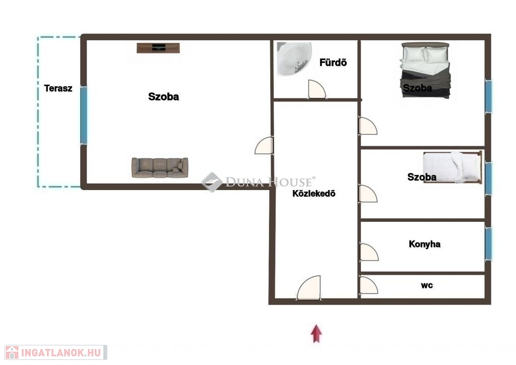 - 2,5 különnyíló szoba