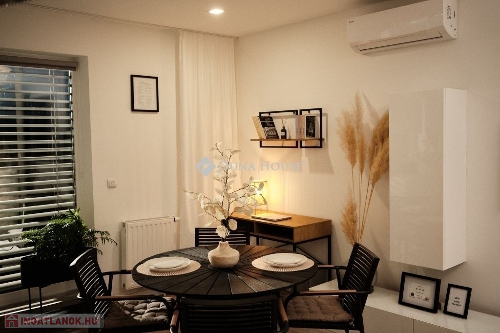 PRÉMIUM PENTHOUSE LAKÁS ELADÓ PÉCS BELVÁROSÁHOZ KÖZEL KÉT KÜLÖN LAKÁSSAL, TELJES BERENDEZÉSSEL, AZONNALI HOZAMMAL!Pécsett, a belvárostól mindössze pár perc sétára, a 2017-ben átadott Megyer Ház lakópark 4. emeletén kínálunk megvételre egy 70 m²-es, tehermentes penthouse lakást, amelyet két különálló lakássá alakítottak.Az ingatlanhoz nagyméretű fedett terasz is tartozik (30 m² és 20 m²), melyek mindkét nappaliból közvetlenül megközelíthetők.--KIEMELT ELŐNYÖK:Jelenleg mindkét lakás bérbe adva, teljes kihasználtsággalAzonnali, stabil és rendkívüli hozamA teljes berendezés a vételár részét képezi az ingatlan azonnal tovább üzemeltethetőKét külön bejáratú, önálló lakás maximális kihasználhatóság--Főbb jellemzők:Mindkét lakás: amerikai konyhás nappali + fürdőszoba WC-vel + teraszPrémium minőségű kivitelezés, letisztult designEmelt szintű, gépesített konyhákElektromos zsalúziaNagyteljesítményű klímák minden helyiségben (hűtés-fűtés)Távfűtés egyedi mérésselAlacsony fenntartási költség1 db utcai felszíni parkoló tartozik a lakáshoz2 további parkoló vásárolható-Lokáció:Belváros közeli, exkluzív környezetKiváló közlekedés minden iránybaVilágos, napfényes lakás egész nap--Befektetők figyelem!Az ingatlan jelenlegi működése és kialakítása révén azonnal bevételt termel, így ideális választás azok számára, akik kockázatmentes, kész befektetést keresnek Pécs egyik legkeresettebb lokációjában.További információért és megtekintésért várom hívását!