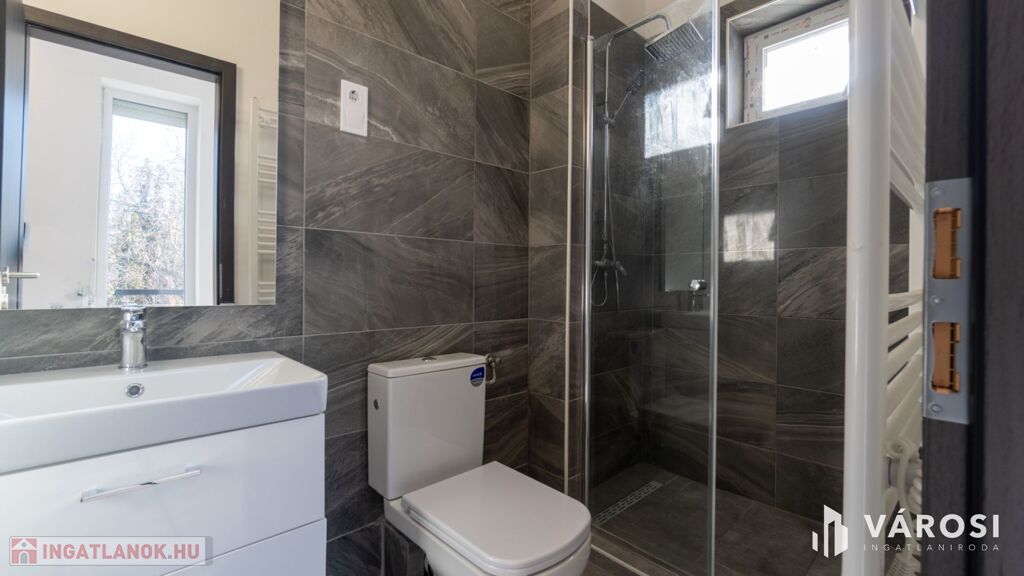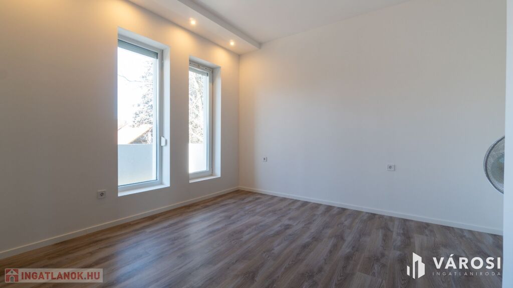 Ez a hirdetés a 2 lakásos ingatlan emeleti lakására vonatkozik. A földszinti lakás is eladó 84.000.000 forintos áron, melyhez 190 m² privát kert is vásárolható.