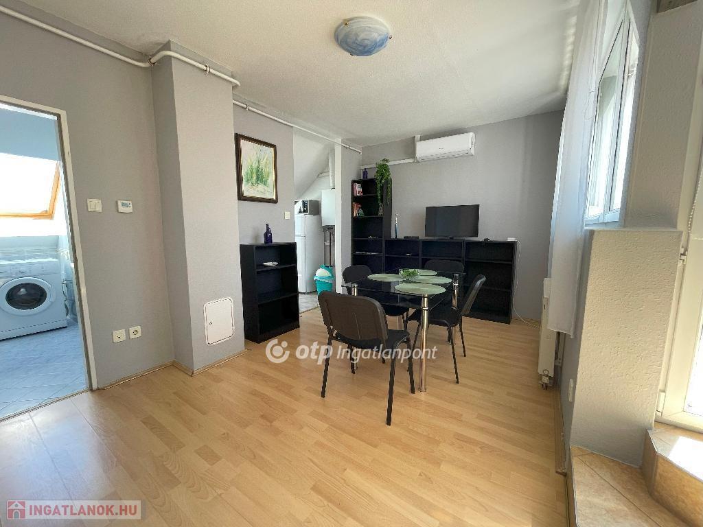 Az ingatlan egy több lakásos társasház 3. emeletén helyezkedik el. A lakásban egy előszoba közlekedővel, egy szoba, egy nappali és étkező, egy konyha, egy wc és egy fürdőszoba található. Zárt tetőterasza nagy és kényelmes, csaknem 15 m2. Egyedi mérőórákkal rendelkezik. Fűtése és meleg víz ellátása jelenleg kondenzációs gázkazánnal, radiátor hőleadókkal biztosított. A gázkazán 2024-ben teljes egészében megújult. A műanyag nyílászárók rolóval ellátottak. A társasház rendszeresen karbantartott. Lépcsőháza tiszta, a szomszédok kedvesek és barátságosak. Parkolási lehetőség a ház előtti 1-es kategóriás parkolóban lehetséges. Az ingatlan értékét tovább növeli az elhelyezkedése, konyhai és a fürdőszobai ablakból a Fő tér és a Víztorony szépsége tárul közvetlen elénk. A lépcsőházból kilépve pár lépés távolságra minden megtalálható. A vasútállomás, buszpályaudvar, posta is gyalogosan 5 perc alatt elérhető. Kiváló befektetési lehetőség akár irodának, akár állandó lakhatásra, nyaralásra vagy nyaraltatásra.