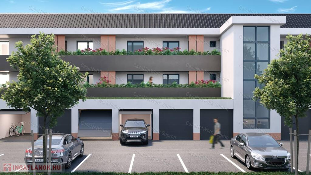 A Casanetwork ingatlanirodák kínálatában új építésú projekt!!!Sopron csendes, családi házas övezetében kínálunk egy 29 lakásból álló új építésű reprezentatív lakóházban, egy br. 83 m2 méretű 2 szoba + nappalis lakást. Az ingatlan emellett gardróbbal, tárolóval és külön WC-vel is rendelkezik.Az épülethez zárt, belső terület tartozik melynek egy részén helyezkednek el az udvari beállók. Garázs és mélygarázs egyaránt választható a lakásokhoz, ezek árai 6,5 M és 4,5 M, beálló esetén 2,5 M.Tároló is vásárolható, nagysága a vevő igényeihez igazítható. A fűtés környezet- és energiabarát rendszerrel üzemel.Zöld hitel igényelhető!!!A fizetési ütem lépcsőzetes, szerződéskötés 20 % lefizetésével lehetséges. Átadás: 2023 márciusa.Nagyon szép, élhető környezetbe várjuk a leendő tulajdonosokat!