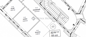 A 11 lakás: A második emeleti ingatlan 59 m2 alapterületű, amerikai konyhás nappali, egy hálószoba, gardrób és fürdőszoba kapott helyet benne, a hangulatos lakás tágas, világos, délnyugati tájolású, kilátással a sétáló utcára...