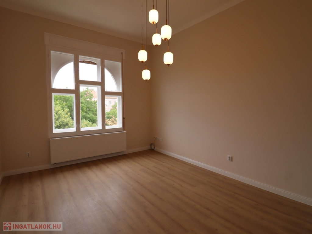 Eladó egy 79 m²-es, 2. emeleti, amerikai konyhás nappali + 2 szobás, teljes körűen felújított lakás Szeged belvárosában, a szecessziós Bokor-palotában.