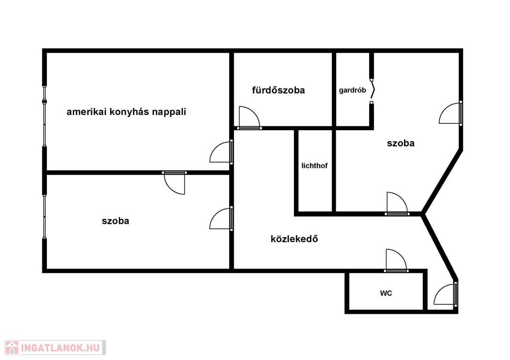 • Tágas közlekedő, beépített szekrények kialakításának lehetőségével