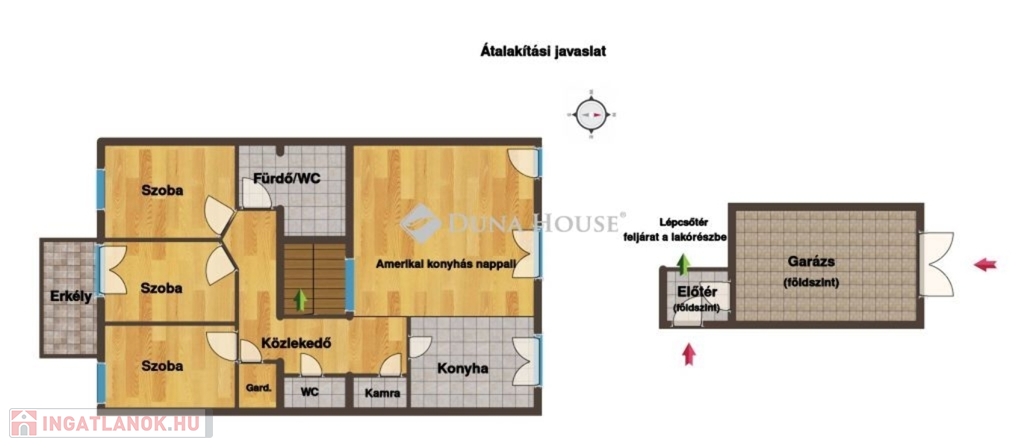 ELADÓ Szeged belvárosától, a Dóm tértől 15 perc sétára egy 4 szobássá alakítható, FELÚJÍTOTT, IGÉNYES lakás ERKÉLLYEL, GARÁZZSAL!Az ingatlan Szeged Alsóváros kellemes, fás, kis forgalmú utcájában található, néhány perc sétára a vasútállomástól, a klinikáktól, egyetemektől, a Dóm tértől és a belvárostól . A tulajdoni lap szerint 74 m2, lemérve 80 m2 alapterületű, kiváló állapotú lakás, jelenleg nappali + 2 szobás, de kis rafordítással akár amerikai konyhás nappali + 3 kisebb szoba is kialakítható.A lakás a biztonsági ajtóval ellátott földszinti előszobán, vagy a társasházi alapító okirat szerint az ingatlanhoz tartozó 15,6 m2-es garázson keresztül is megközelíthető. A közvetlen garázskapcsolat rendkívüli kényelmet biztosít kellemetlen időjárás esetén, de a bevásárlást is egyszerűen a lakásba lehet juttatni. Az előszobából fa burkolatú lépcsősor vezet a lakótérbe, ami alatt tágas tároló található.A tágas nappali és a konyha északi fekvésű, amely a csendes, fákkal övezett utcára néz. A megfelelő benapozottságot két franciaerkélyes erkélyajtó biztosítja. A nappali üvegkazettás kialakítású, nemrégiben felújított ajtóval rendelkezik.A konyha mellett található egy kamra, egy kézmosóval és beépített bidés funkcióval ellátott WC, valamint egy -- mennyezetig beépített tágas gardróbszekrény.A két déli fekvésű szoba és az erkély a társasház fás belső udvarára néz. A jelenleg étkezőként használt nagyobb szoba két ajtóval rendelkezik, így 2 szükség esetén két kis szobává alakítható. A nappali, a szobák, a közlekedő szép állapotban lévő tölgyfa parkettával burkoltak, amit jelenleg le nem ragasztott szőnyegpadló véd.A konyha mellett 2020-ban teljeskörű felújításon esett át a fürdőszobába, amelyben épített zuhanykabin, mosdó, beépített bidés WC, elektromos törölközőszárító van és a megfelelő páratartalomról beépített páraelszívó gondoskodik.A lakás fűtését cirkó gázkazán biztosítja radiátor hőleadókkal, a nyári melegben pedig z étkezőben felszerelt légkondícionáló biztosít kellemes hőmérsékletet.A helyiségekben található hő- és hangszigetelt műanyag ablakok szúnyoghálóval és elektromos redőnyökkel vannak ellátva. A biztonságról riasztó berendezés gondoskodik.Az ingatlan 1/1 tulajdoni hányadú, per- és tehermentes. A társasház lakóközössége csendes, az ingatlan anyagi helyzete rendezett.A társasházi alapító okirat szerint az ingatlanhoz kizárólagosan tartozó 15,6 m2 alapterületű garázs vételára 10 millió Ft, ami a lakás vételárán felül fizetendő.A közelben több orvosi rendelő, élelmiszerbolt, fodrászüzlet, kozmetika és kávézó is található, de Alsóváros ékköve, a Mátyás király téri Havas Boldogasszony templom is itt helyezkedik el. A városban a közlekedést a villamos mellett számos buszjárat segíti, a megálló 3 perc sétára található.Ha további kérdése van, vagy szeretné megtekinteni az ingatlant keressen bizalommal!Amit az Ön számára biztosítani tudok: ingatlanok eladásának és vásárlásának teljes körű ügyintézése, ingyenes tanácsadás, értékbecslés, megbízható ingatlanos szakjogász, energetikus,. hitelügyintézés a legjobb feltételekkel, gyorsan és díjmentesen.