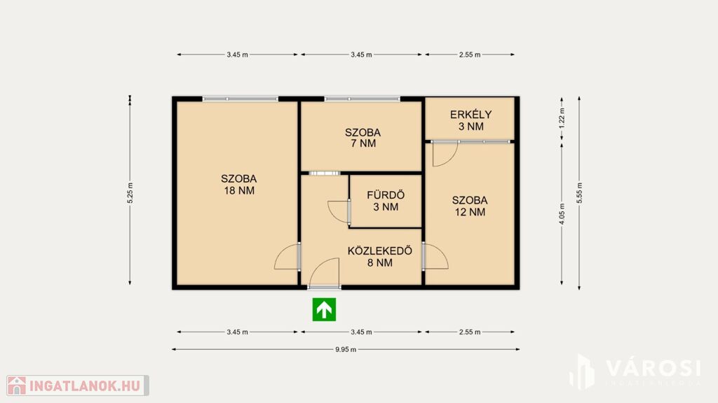- **2 hálószoba és 1 nappali**: Az elrendezés praktikus, a terek kényelmesek és tágasak.
