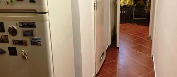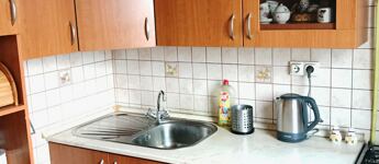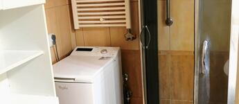 A fürdőszobában az eredeti kád helyett tuskabin lett beépítve és a konyha sem az eredeti.