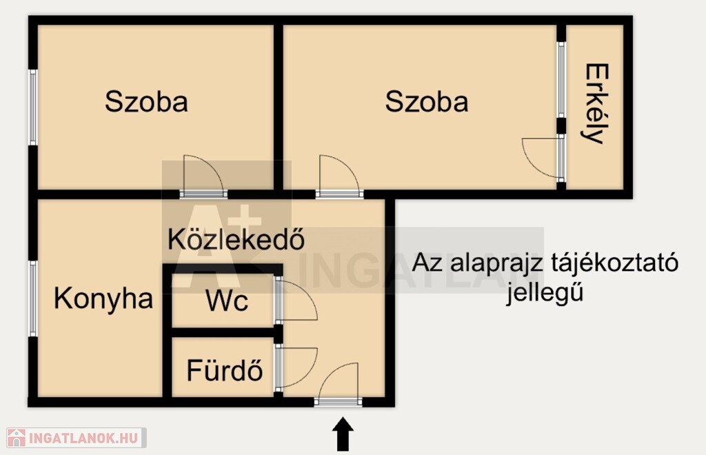 - 54 m2: 2 teljes szoba.