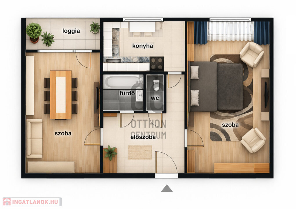 két külön nyíló, jól berendezhető szoba