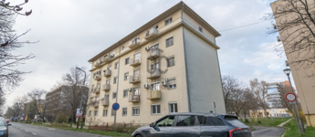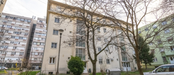 A lakás egy négyszintes tégla építésű társasház földszintjén található.