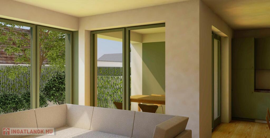 földszint: amerikai konyhás nappali közvetlen kertkapcsolattal, valamint fürdő és mellékhelyiségek.A földszinti lakásoknál két hálószobával