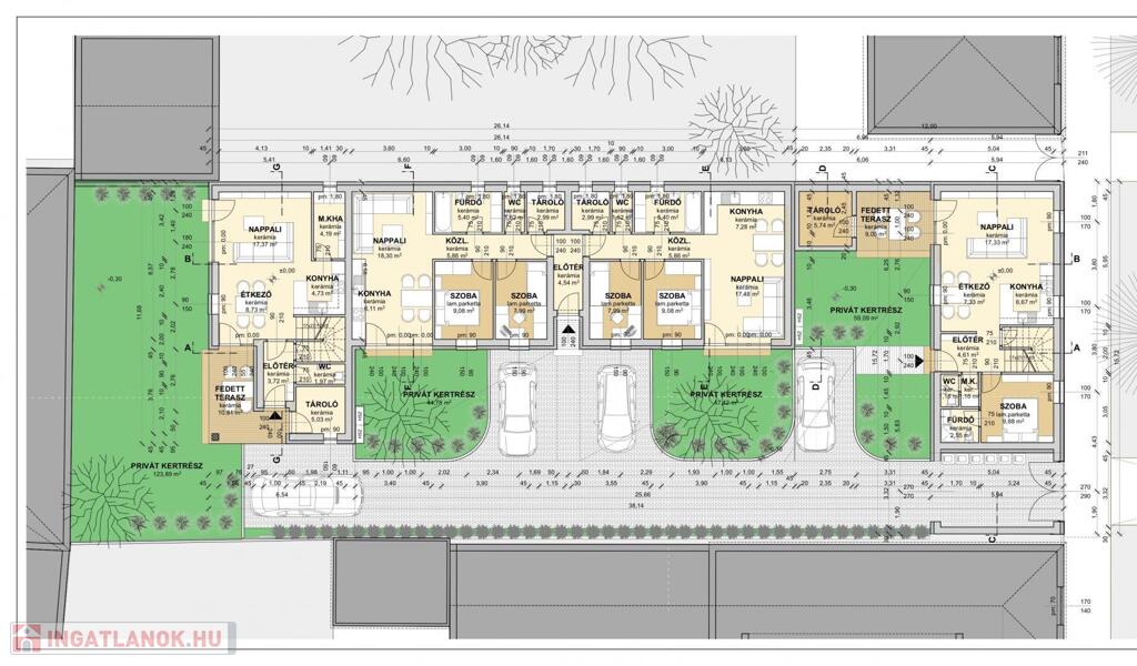 3-as lakás: 57 nm (69.999.000 Ft) + 1 db térkőves belső parkoló (1.500.000 Ft) + 48,44 nm privát kertrész = 71.500.000Ft