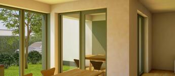 Nyílászárók: műanyag, szürkés-zöld színben