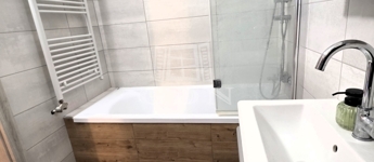 - A fürdőszobában, illetve egy különálló illemhelyiség is található a lakásban