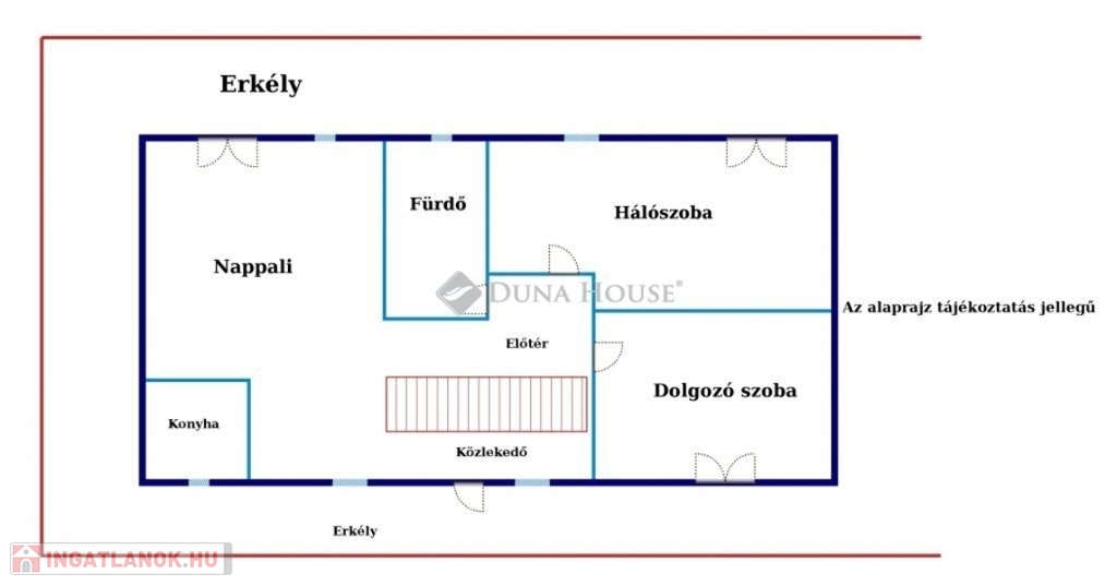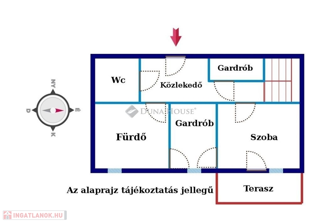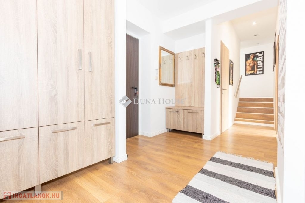 Az ingatlanba beérve az alsó szinten található az előszoba, fürdőszoba külön WC helyiséggel, gardrób és egy tágas szoba külön erkéllyel. Felső szintre felérve található a tágas nappali, konyha, dolgozószoba, fürdőszoba, hálószoba.