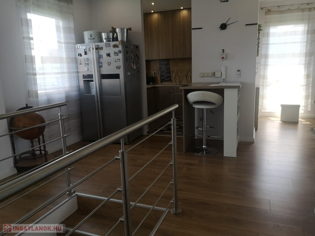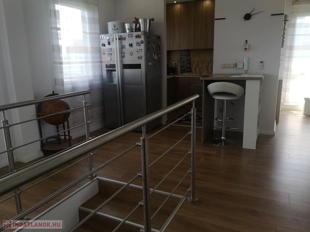 Zala vármegye, Zalaegerszeg 130m2-es belső kétszintes lakás eladó. A zalai megyeszékhely belvárosában, 2017-ben épült liftes társasház harmadik emeletén található penthouse lakás fogadószintjén közlekedő, erkélyes hálószoba, gardrób, tároló, fürdőszoba és illemhelyiség, míg az emeleten további 2 szoba, nappali, konyha, közlekedő, és fürdőszoba, valamint a közel 130m2-es műfüves, jakuzzival is ellátott tetőterasz. A klimatizált lakás melegéről gázkazán gondoskodik. Az ingatlanhoz a 16lakásos társasház zárt udvarán garázs is vásárolható, melynek ára: 10MFt.