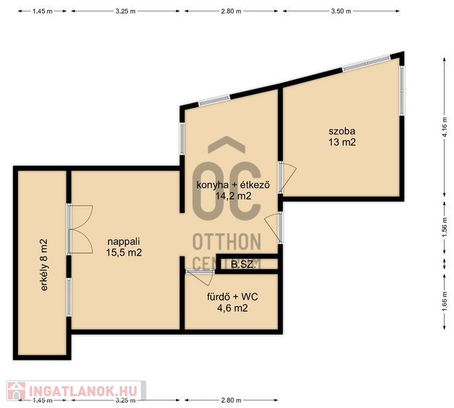 -Helyiségei: tágas konyha-étkező-nappali, hálószoba, fürdőszoba és erkély.