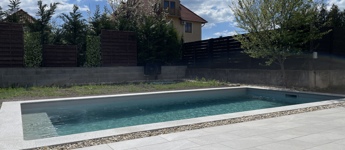 A nappaliból kilépve vár a 20 m2-es terasz, amely közvetlen kapcsolatot biztosít a kerttel és a 24 m2-es, fűthető medencével – tökéletes helyszín a pihenéshez, egész szezonban.