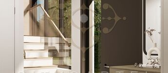 A világos, nagy üvegfelületekkel határolt terek, a hangulatvilágítás, a beépített lépcsőmegvilágítás, valamint a gondosan megválasztott anyaghasználat egy igazán magas presztízsű otthon érzetét kelti – pontosan azt, amit a képeken is látható modern enteriőr sugall.