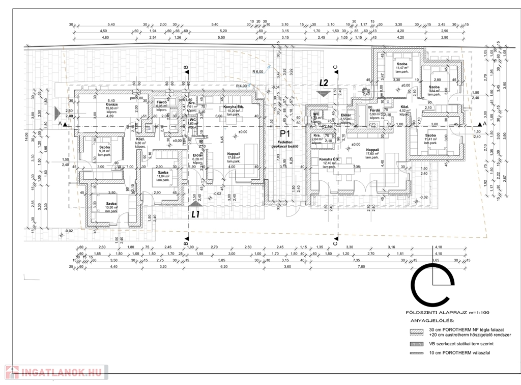 15 cm homlokzati és 30 cm födémszigetelés